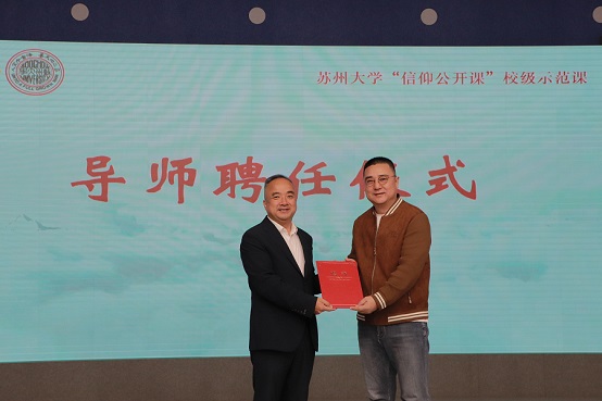 现场,查佐明向臧溪川颁发了学校“信仰公开课”导师聘书。
