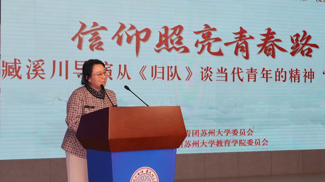 中国内地知名导演臧溪川,知名演员郭晓明,苏州大学党委常委、副校长查佐明,教育学院党委书记宋清华等学院党委理论学习中心组成员,教育学院专业教师代表、团学老师出席本次活动。参加活动的还有校院“青年马克思主义者培养工程”秋季班学员、教育学院2025级新生代表。