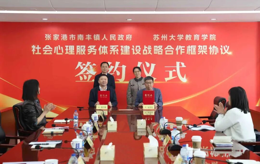 10月24日上午,学院与南丰镇举行社会心理服务体系建设战略合作框架协议签约仪式。院党委书记宋清华,党委委员、心理学系主任周成军、孔明副教授和王楚珺博士等参加了本次活动。南丰镇党委书记陈稳,镇党委副书记、镇长张贵林等出席签约仪式。