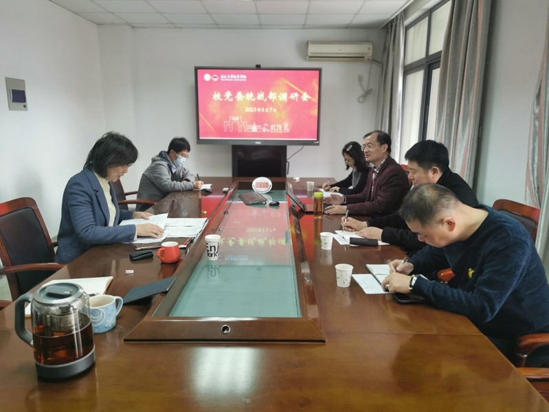 2023年3月7日下午,学校党委统战部一行4人在校党委常委、统战部部长黄志斌的带领下莅临教育学院调研统战工作。学院党委书记赵阳、统战委员曹永国、组织员常静参加了调研会。