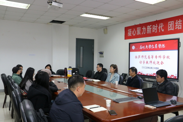 拉萨师范高等专科学校选派6位骨干教师来我校访问学习,根据学校安排,我院接待陈玉山、仁青旺姆、索朗卓玛3位骨干教师。3月15日,我院在学院研讨室(1005-5542)举行了拉萨师范高等专科学校访学教师欢迎会。我院院长冯成志、党委书记赵阳、访学指导教师李利、马忠虎、付亦宁以及曾赴西藏支教教师周成军、甘忠伟参加欢迎会。