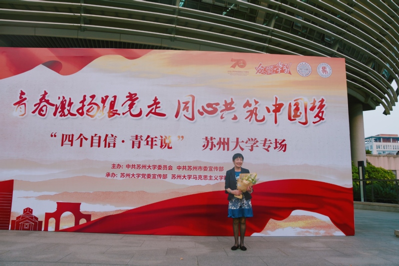 9月25日下午,我院黄辛隐教授参加了以“青春激扬跟党走,同心共筑中国梦”为主题的苏州大学“四个自信”·青年说活动。本次活动由中共苏州大学委员会和中共苏州市委宣传部共同主办,全校共计有两百余名师生参加。活动分设爱国情、强国志、报国行三个篇章,师生代表以演讲、情景剧及诗朗诵等多种形式抒爱国之情,道强国之志,立昂首奋进、报效祖国之心。