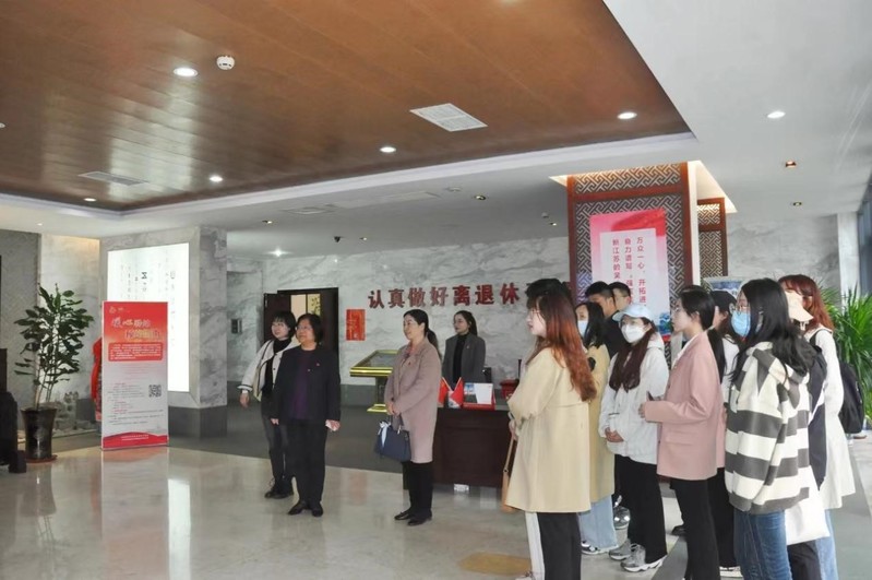 开展活动前,教育学院师生在老干部局青年党员的带领下参观区“银发先锋”党群驿站,实地实景地感受广大离退休干部的光辉奋斗史,汲取先锋模范力量,催生奋进动力。