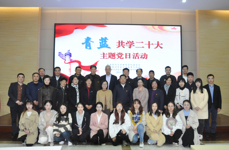 为深入学习贯彻习近平新时代中国特色社会主义思想和党的二十大精神,进一步发挥教育学院和吴中区委老干部局和“青蓝+”党建联盟的优势作用,加强交流合作、资源共享,4月6日下午,“青蓝共学二十大”主题党日活动在吴中区老干部活动中心举办。