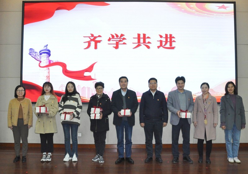苏州市委老干部局副局长臧传军,吴中区委组织部副部长、老干部局局长李莉,教育学院党委副书记、副院长朱晨花为“青蓝+”联盟党员代表赠送学习用书,勉励大家自觉勇敢地“扛起新使命,谱写新篇章”。