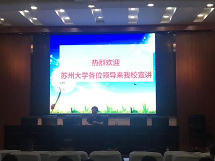 周高总会计师从“厚度”“广度”“高度”“深度”“温度”等五个维度全面介绍了我校办学历史、人才培养、学科建设、师资队伍、科技创新、国际合作等情况。在为高中学子宣讲中,他旁征博引,妙语如珠,用生动精彩,富有感染力的语言诠释苏大故事,现场反响热烈。周总会计师表示:“选择苏大就是选择未来”。苏大是一所有温度有情怀的学校,苏大校训“养天地正气,法古今完人”传递出来的人文情怀,激励着一代又一代苏大学子奋发向上,欢迎广大学子报考苏大。