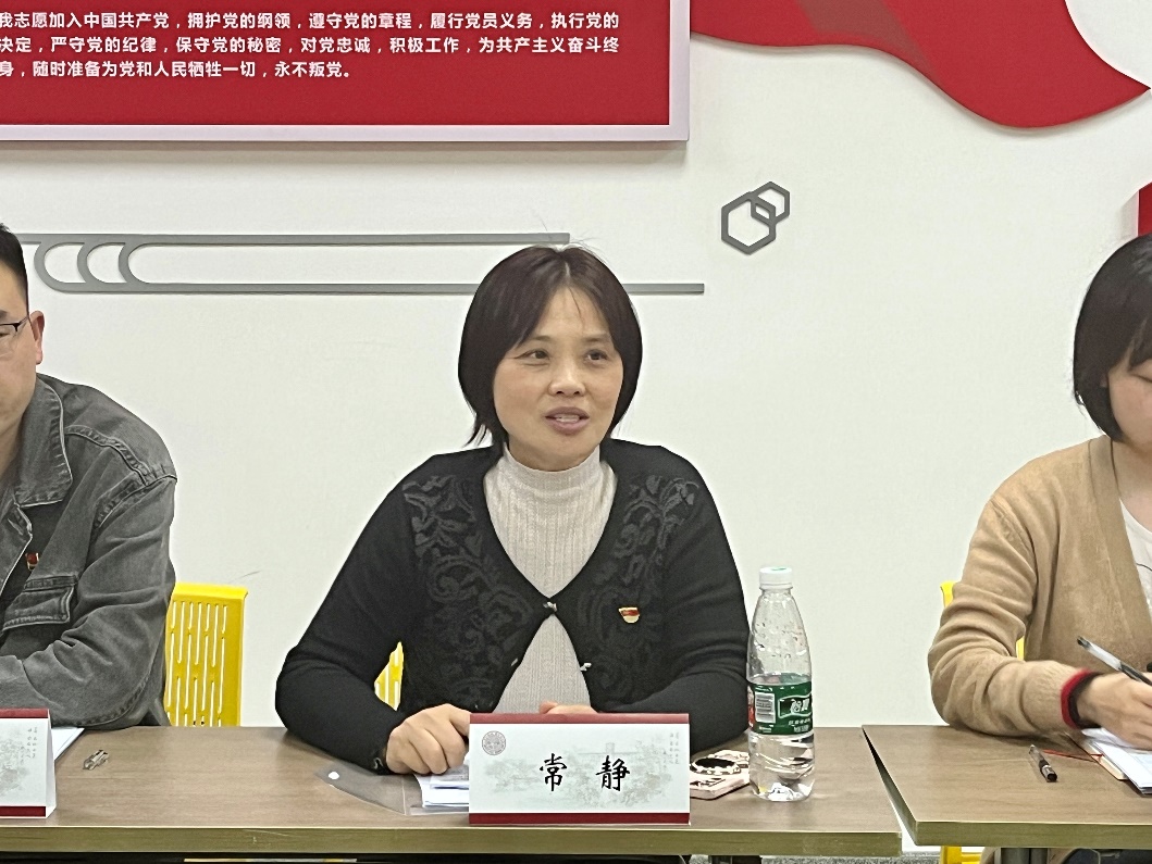 常静在总结发言中充分肯定了各党支部学生党员的工作,同时也指出各党支部要深入开展学习贯彻习近平新时代中国特色社会主义思想主题教育,围绕“学思想、强党性、重实践、建新功”的总要求,教育引导党员在以学铸魂、以学增智、以学正风、以学促干上下功夫见实效,要求广大党员同志要主动把自己的思想和态度摆正放好,主动学习创新理论、提升思想境界;切实关注身边同学的真实需求,在实践中不断取得新的进步和成绩。