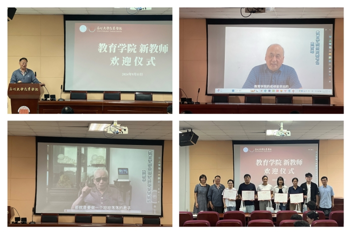 为了欢迎新入职教职工,帮助新教师尽快融入教育学院集体,适应新角色,院党委精心策划了新教师欢迎仪式,在仪式上新教师分别对自己的所学专业和研究领域,入职以后的打算等作了自我介绍,学院专门邀请了离退休教师代表,以现场和视频两种方式语重心长的寄语新教师,对话学院教师,对学院建设发展也提出了建议,学院许多离退休老师退而不休,继续关心支持学院发展,在他们以往的教育经历中体现了心有大我,爱岗敬业、关爱学生的优秀品质,是教师们学习的榜样。冯成志院长对新教师提出了“有爱心、要勤奋、不走捷径、有责任心”的期许,希望新教师尽快完成角色的转变,处理好集体关系、同事关系、师生关系、指导教师关系、工作和生活关系,学院还为新入职教师精心准备了由每一位老师亲手签名的入职欢迎卡和工作礼包,赵阳书记在讲话中强调了新教师在未来的工作中一定要培养高尚师德,坚守育人初心,脚踏实地,担当作为。