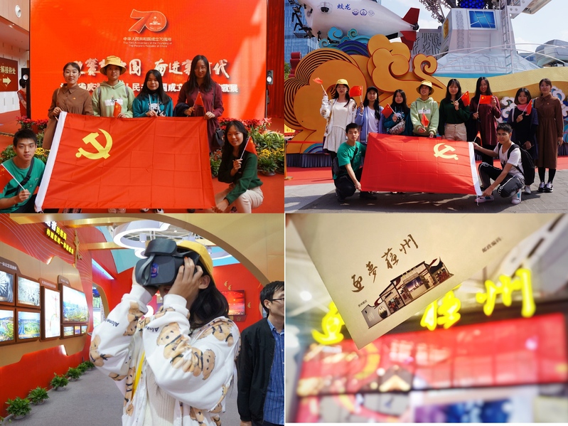迎着朝阳,伴着微风,本科生一支部的党员们饱含着激动的心情,坐上了开往南京的大巴前往目的地——南京国际博览中心。在庆祝中华人民共和国成立70周年大会群众游行方阵中的江苏省彩车出现在视野中,惊艳四座。学生党员们激动地走进了博览中心,时而驻足凝望,细细品读墙上的文字;时而和身边同伴低声交谈;时而情不自禁地拍下一张张照片。展内的文化和成就让每一位党员充分体会到了国家70年来的发展变化。