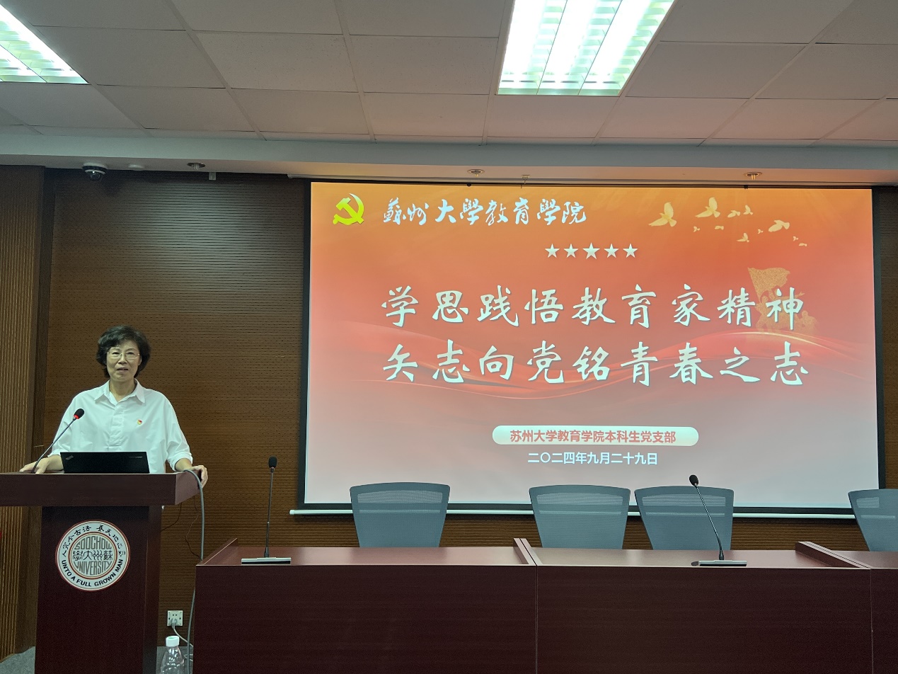 为深入学习全国教育大会精神,以昂扬饱满的青春之姿迎接新中国成立75周年,教育学院本科生党支部于9月29日晚开展“学思践悟教育家精神,矢志向党铭青春之志”主题活动。教育学院本科生党支部党员师生,学院分党校学员济济一堂,共话身边党员的成长故事,共学教育家精神,砥砺青春奋斗之志。