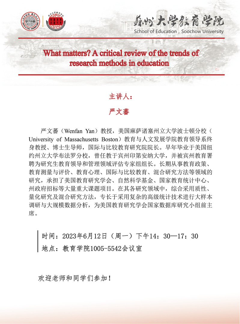 学术报告:What matters? A critical review of the trends of research methods in education[6.12]