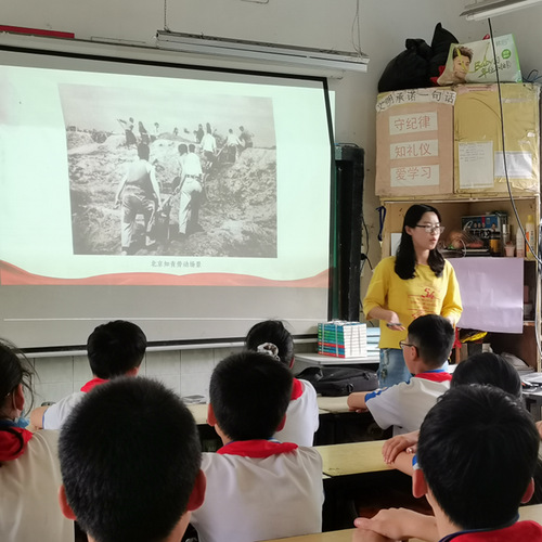 首先,2017级教育学(师范)班夏美茹同学为东冉学校6(2)班的同学讲述了习近平同志的七年知青岁月,将同学们带入到16岁的习近平同志在陕北农村和农民同吃同住的生动场景中,从跳蚤关、饮食关、劳动关、思想关四个方面描述了16岁的少年克服的困难和挑战。七年的知青岁月让习近平同志从一个十五六岁的少年成长为一个饱尝人生酸甜苦辣的青年,他也一直身体力行地“精准扶贫”。同学们被这一故事深深吸引,也更加坚定了勤奋学习的信念。