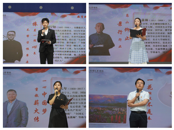 本科生、研究生、教师代表分别充满深情地讲述了陶行知、季羡林、黄大年、潘懋元等教育名家的故事。从故事的讲述中大家充分感受到这些大先生们对信仰的执着,对初心的坚守,对使命的担当。