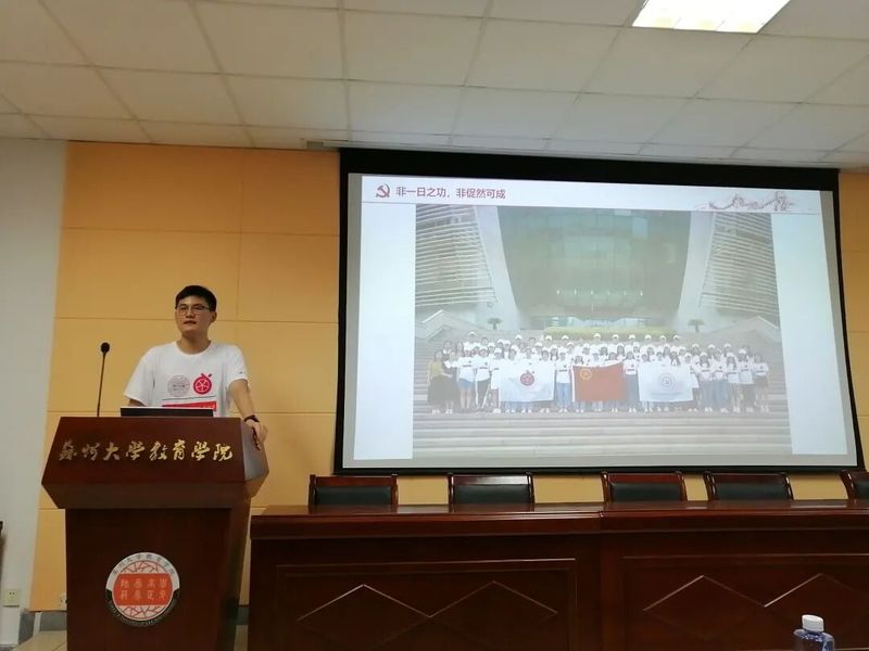 主持人对参会人员简单介绍之后,团校培训正式开始。首先,主持人介绍了小红柚宣讲团的相关内容,接着由小红柚社会实践团的郭新宇同学进行暑期社会实践活动的经验分享。郭新宇同学从自身社会实践的经历出发,从问题收集、组队分工、投稿渠道等方面讲诉了如何很好的参与社会实践活动。最后提醒各组织做暑期社会实践项目非一日之功,非促然而成,呼吁大家认真对待暑期社会实践。