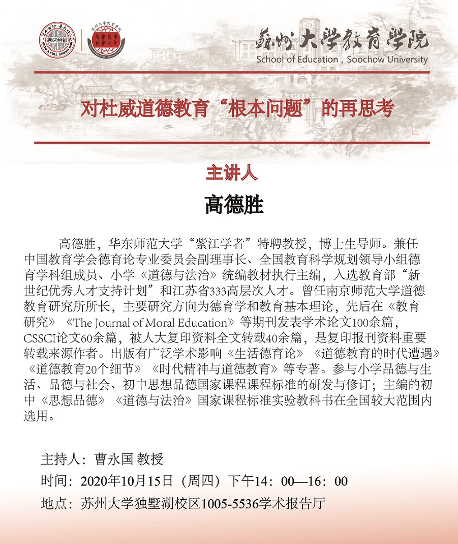 学术报告:对杜威道德教育“根本问题”的再思考[10.15]