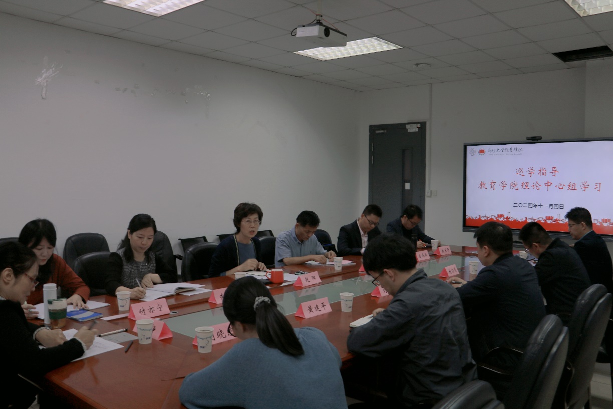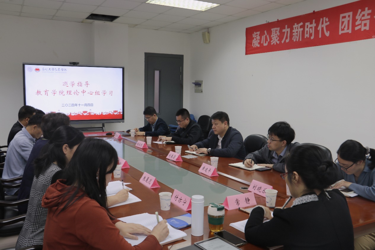 114日,教育学院党委理论学习中心组举行集中学习研讨,围绕学习贯彻全国教育大会精神主题展开。校巡学旁听工作小组组长、党委办公室主任刘春雷带领巡学指导组成员莅会指导。院党委书记赵阳主持学习,学院党委理论学习中心组成员、各系主任、教工党支部书记参加学习。