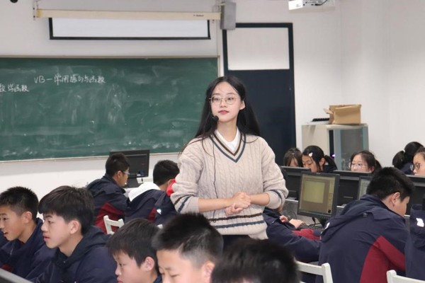 本次开课的实习生有两名同学。第一节课由实习生王心彧讲授《VB常用语句与函数》。课堂以“幸运数字”游戏程序作为主线,借助多媒体,带领学生们学习了VB语言的常用函数,并带领学生完成了程序的制作过程。第二节课由实习生郭雨欣讲授《面向对象的程序设计》,课堂以“红包”作为引入,巧妙地向学生们介绍了Visual Basic语言面向对象的特点,以及对象的三要素:属性、事件及方法。教学构思精妙,环节设计有亮点。