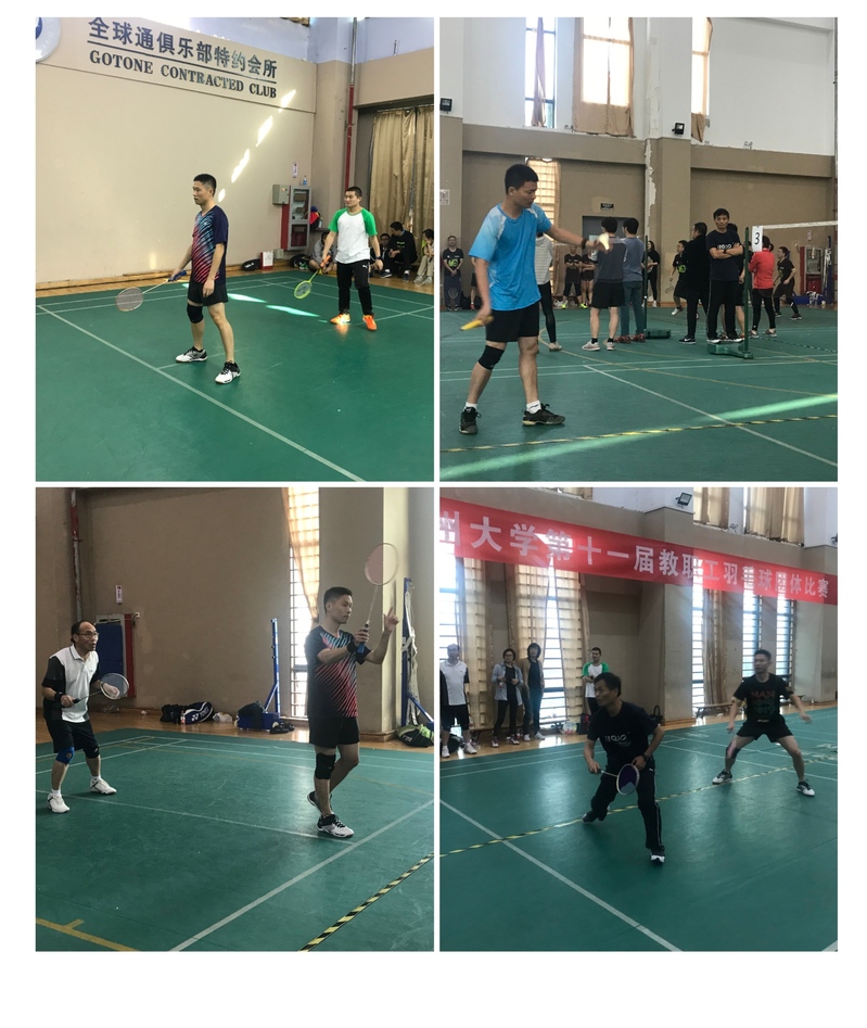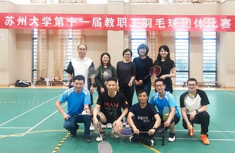 金秋十月,2019年苏州大学第十一届教职工羽毛球团体赛在独墅湖校区拉开帷幕。本次比赛共有31支代表队报名参赛,教育学院羽毛球队积极备战。在第一阶段为分组循环赛中,教育学院和体育学院、轨道学院、公卫学院同在A组。分组循环赛采用25分每球得分制,每场一局,五场三胜制,出场顺序为男子单打、男子双打、女子单打、混合双打、男子双打。面对多名队员临时出差缺阵的不利因素,我院羽毛球队认真思考,每场开始前,仔细研究对方队员的技术,制定高效的战术,并按照运动员特点进行排兵布阵,在对阵轨道和公卫的比赛中均以3:0提前锁定胜局,确保小组出线资格。在最后一场小组第一的争夺战中,2:3遗憾负于种子队体育学院,最终以小组第二的成绩顺利出线,进入淘汰赛。