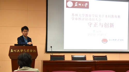 教学副院长曹永国以“守正与创新”为题对我院教育教学审核评估工作进行了全体动员和整体部署。他强调,新一轮审核评估是对学校办学治校和人才培养相关工作的一次全面审视和总结,学院高度重视,已成立评建工作小组。学院全体教职工要统一思想,充分认识新一轮审核评估的重要性、紧迫性。要坚持立德树人,以学生为本,深化教学改革。要强化保障体系,坚守底线思维,按时间节点稳步推进圆满完成各项工作。