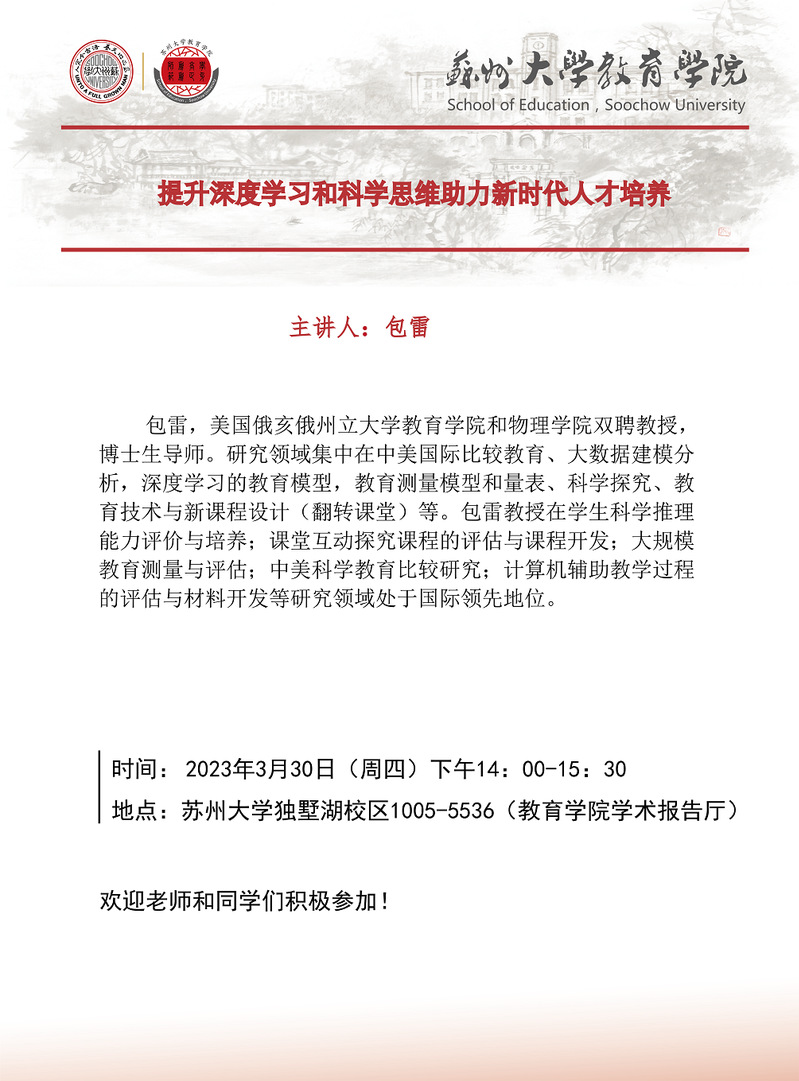学术报告:提升深度学习和科学思维助力新时代人才培养[3.30]