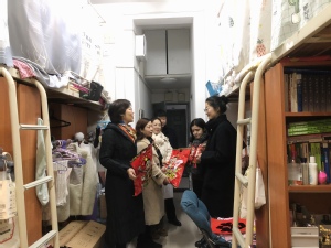 春节将至,情暖冬阳。为了深⼊了解留校学生在校的学习生活情况,2022年1月28日,学院党委书记赵阳与党委副书记、副院长朱晨花,带着新春大礼包,为同学们送去学院的深切关怀和新春的美好祝愿,陪同走访的还有实验室管理员马琦、辅导员钱成一和金利妍。