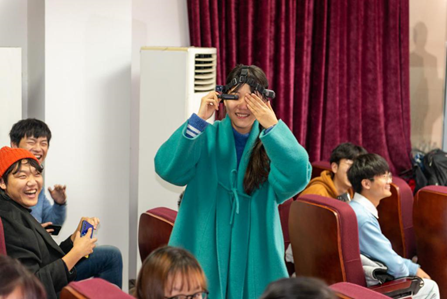 接下来,李华导师从开创软件公司自主创新的应用产品,如智慧安防、智慧工地、数字孪生等系统的原理出发,向同学们解释了新基建的内涵,展示了利用大数据应用的实际案例。在大数据应用案例中,开创软件公司研发的语音识别系统,引发了同学们积极的互动。这个提升和测试普通话水平的系统,满足了使用者的特定需求,使同学们了解到利用大数据在教育领域应用的实际效果。李华老师还专门带来了一个VR眼镜,利用视觉和语音的结合,展现了人工智能的创新应用。同学们争先踊跃参与体验,掀起了讲座的高潮。