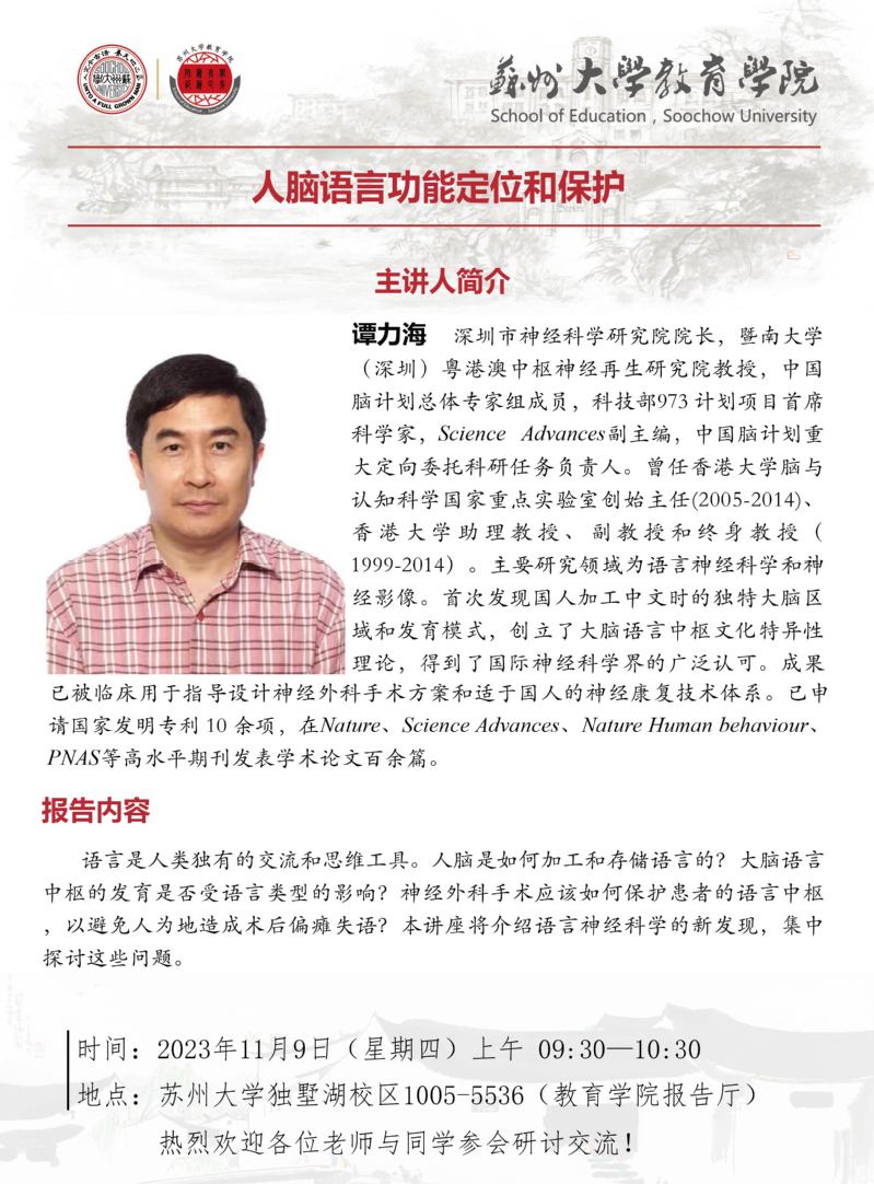 学术报告:人脑语言功能定位和保护[11.9]