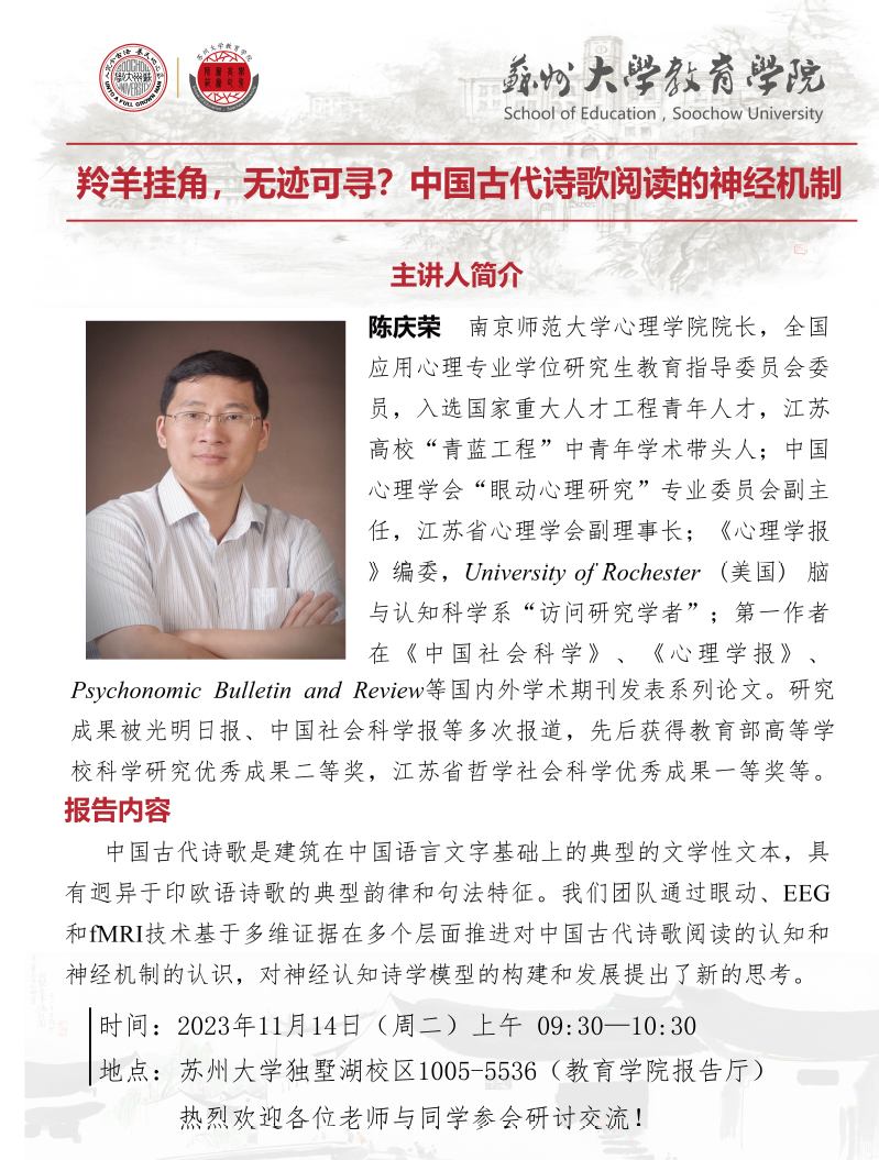 学术报告:羚羊挂角,无迹可寻?中国古代诗歌阅读的神经机制[11.14]