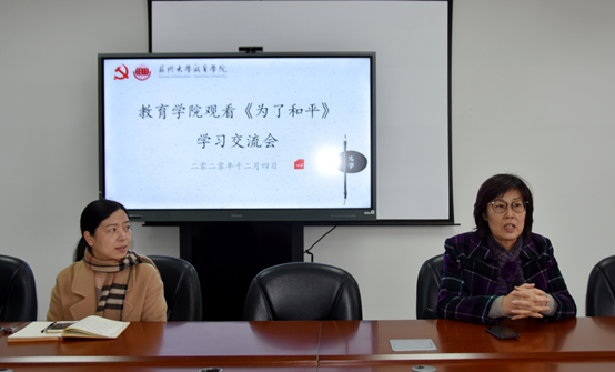 2020年12月4日,苏州大学教育学院于独墅湖校区文科综合楼(1005-5542)开展2020年班主任工作总结交流会暨《为了和平》学习交流会。会议伊始,赵阳书记表达了对班主任工作的肯定,鼓励各位老师提高自身思想觉悟,展现师风师德,做好学生的榜样。