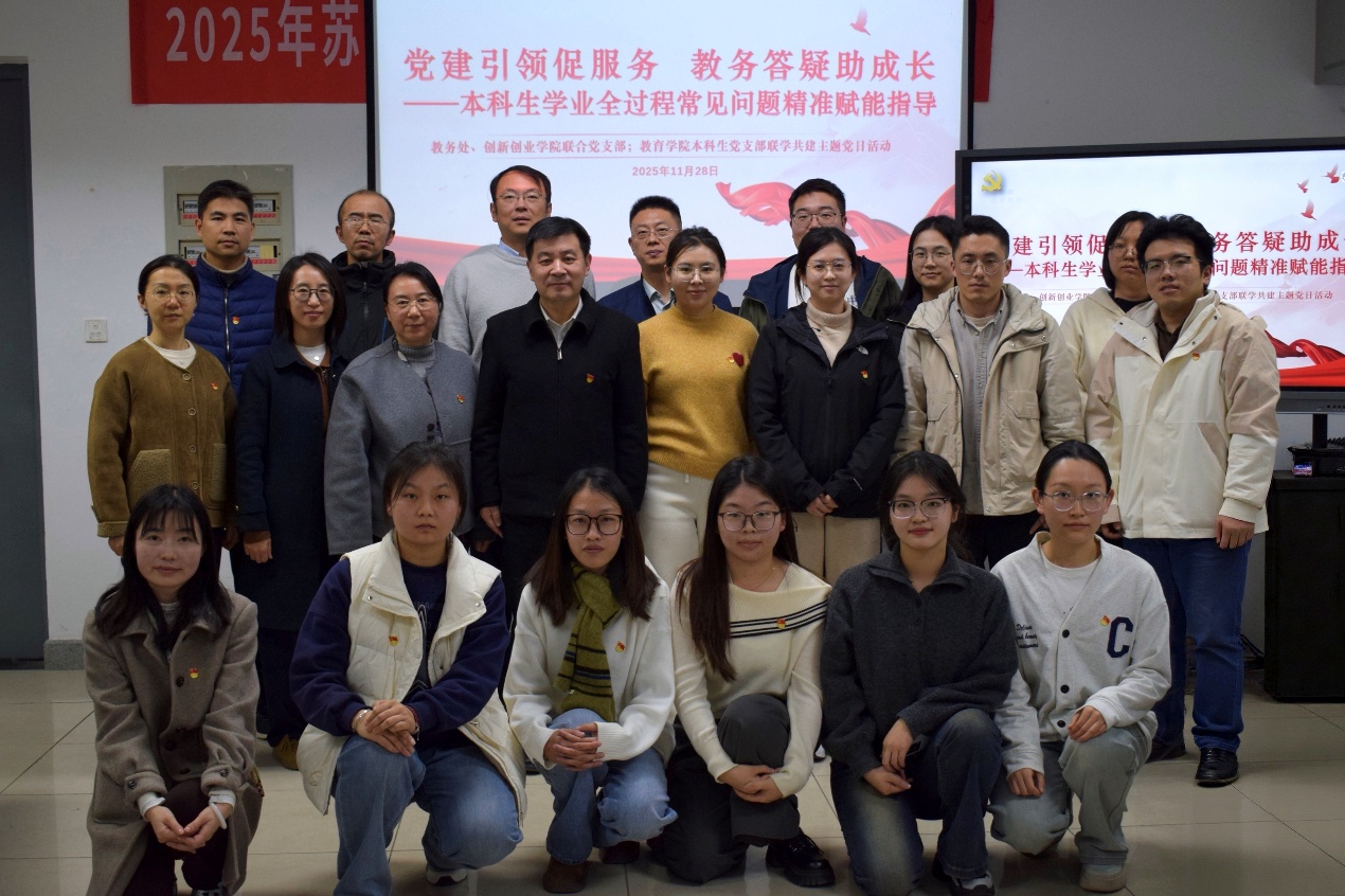 为深入推进党建与业务工作深度融合,搭建教务部门与学生之间的“连心桥”,11月28日,教育学院本科生党支部与苏州大学教务处、创新创业学院联合党支部在教育学院5534会议室共同开展“党建引领促服务 教务答疑助成长”主题党日活动,为学院本科生学习生涯规划精准赋能指导,践行“以学生为中心”的服务理念。