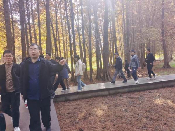 午后,老师们一行漫步溱湖国家湿地公园。芦苇摇曳,水鸟翔集,碧波与云影交织成一幅流动的水墨画。大家结伴沿栈道健步打卡,在清风与鸟鸣中畅聊工作心得和生活趣事,工作压力在欢声笑语间悄然消散。许多老师表示,此行既是“眼里见山水、心中有远方”的诗意之旅,也是重启身心能量、增进同事情谊的暖心之行。
