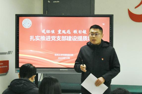 吴常歌作了题为《提标准 重规范 强引领 扎实推进党支部建设提质增效》的党务工作专题辅导报告。他以“忙”“实”“准”三个关键字,精辟概括了学院各支部工作的突出特点,并围绕新时代基层党支部建设要求,从“落实支部职责、建强书记队伍”“严格程序标准、做实党员发展”“深化‘一融双高’、培育党建品牌”三个方面,为学院进一步提升党建工作规范化、科学化水平提供了专业深入的指导。在夯实党员发展基础方面,他强调要建好“三张清单”:后备队伍清单、评价指标清单、负面情形清单;落实“三项制度”:联系培养制度、考察审查制度、教育培训制度;健全“三项机制”:全程纪实机制、档案管理机制、责任落实机制。在党建品牌打造方面,他提出应结合“强国行”专项行动,突出学科优势和专业特色,着力培育具有辨识度和影响力的党建品牌。