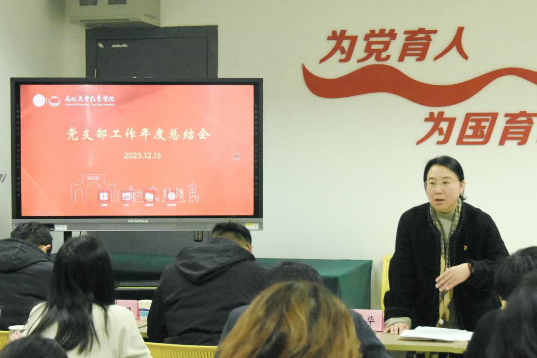 2025年12月15日,教育学院党委在1005-5544党员活动室召开2025年2025年支部书记述职评议暨党务专题辅导报告会。学院党委书记宋清华、党委委员、支部书记和支部委员出席会议。本次会议特邀苏州大学党委组织部党员教育管理科科长吴常歌担任点评专家并作专题辅导。会议由学院党委副书记、副院长朱晨花主持。