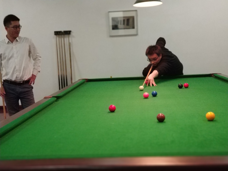 这次斯诺克邀请赛在较短的时间内顺利完成了网上通知、报名、排序和比赛全部环节,离不开我院分工会的大力支持。比赛过程中,学院工会主席付亦宁老师也到场为选手加油。