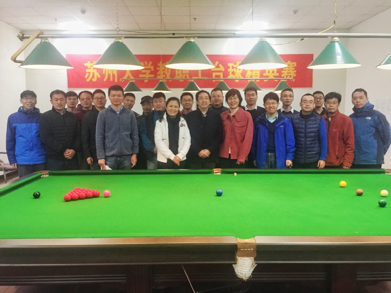 2019年12月1日,由苏州大学工会教工台球协会主办、教育学院分工会协办的“2019苏州大学教工斯诺克台球邀请赛”在独墅湖校区教工活动中心台球室开幕,教工台球协会会长教育学院丁威老师主持了简短的开幕仪式,校工会王永山主席、陈洁副主席代表校工会到场祝贺并讲话,教育学院党委书记赵阳老师也一同出席了开幕式。随后,陈洁副主席开出了台球比赛的第一杆,启动了本届比赛。