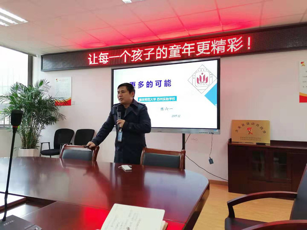 为丰富课堂教学,实施师范生教育新方案,增进师范生对于中小学校本课程的认知和理解,2019年12月19日,我院2018、2016级教育学(师范)专业师生一行50余人来到南京师范大学苏州实验学校调研学习。此次调研由教育学院副院长曹永国教授带队,教育技术系甘忠伟老师、教育学系金国老师随行。
