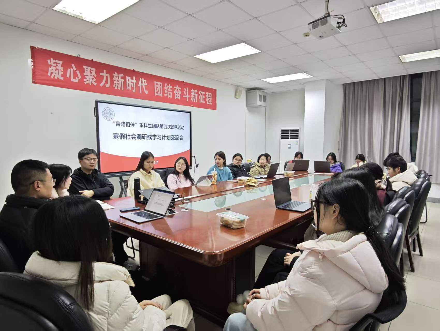 2026年1月7日,教育学院25级本科生“育路相伴”成长陪伴团队本学期第四次活动于学院5542室温情启幕。本次活动以“寒假社会调研或学习计划交流会”为主题,聚焦本科生寒假成长规划与长期发展方向,由许丹东老师担任主持人,王一涛教授、苏兴亚老师、杭洋老师与团队全体本科生共同参与,在温馨的分享与互动中为学期成长画上句点,也为寒假及后续发展锚定清晰路径。