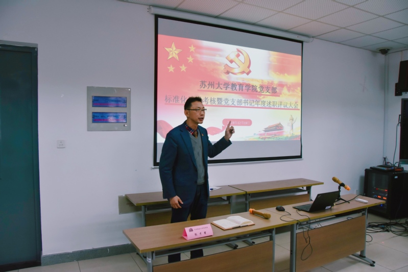 为深入贯彻落实全面从严治党要求,进一步加强教育学院基层党组织建设,提高党支部工作水平,2019年12月19日,教育学院党委在1005-5534召开党支部标准化建设暨党支部书记年度述职评议大会。马克思主义学院党委书记张才君,教育学院党委书记赵阳,党委副书记、副院长朱晨花,党委委员、副院长曹永国共同担任考核评委,我院基层党支部均安排师生代表参加了本次会议。