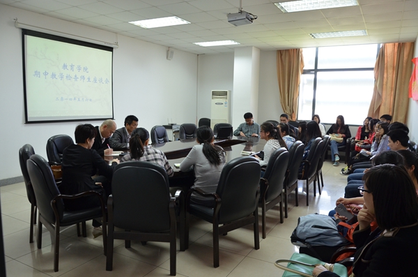 5月6日中午,教育学院期中教学检查师生座谈会在院研究生答辩室召开。教育学院副院长冯成志教授、各系主任、教务秘书、辅导员、班主任以及各班级学生代表参加会议。座谈会由冯成志主持。