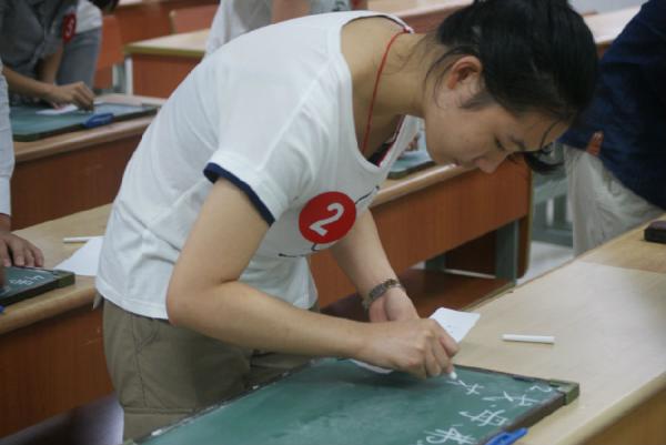 师范生教学基本功大赛共分为说课、即兴演讲、粉笔字书写、钢笔字书写和教师教育基本知识测试五个部分,赛程一天。选手们都积极准备,将自己的最好水平在讲台上完美地展现出来,每个赛场都有四位专业的评委老师,比赛结束后,评委老师评分并且给予点评,医学部的林清,艺术学院的张存惠和文学院的沈乔获得一等奖。