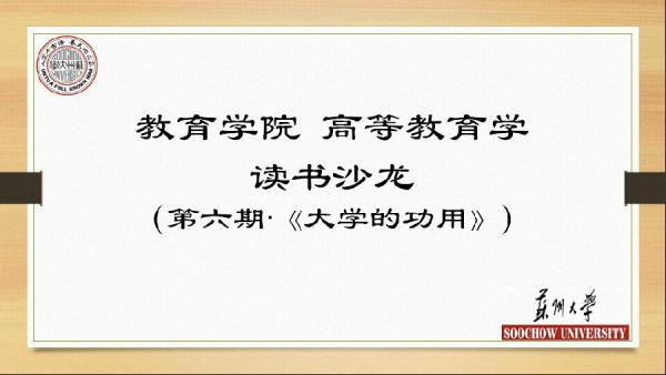 秋风送爽,丹桂飘香。在这个以“丰收”为主题的十月里,教育学院高等教育学专业的同学们也因读书沙龙获得了思想上的丰收。高教专业第六期读书沙龙于10月15日下午2点半在教育学院研讨室举行,讨论书目为克拉克·克尔的《大学的功用》。参与本次沙龙的有彭媛、李凤玮、汤荷花、齐杭、黄荣华、牛家兴、陆兆金等七位同学。