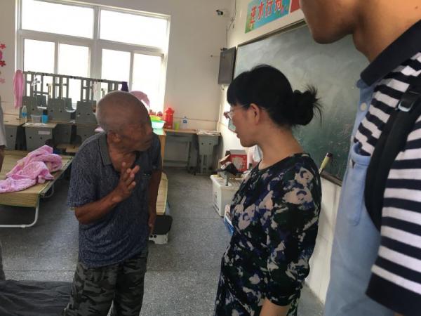 目前安置在阜宁板湖中心小学的受灾群众基本是受伤、五保户、鳏寡孤独的老人,儿童所占比例不高。该安置点从6月24号开始启动,人数最多时200多人。由于部分受灾群众投奔亲戚,截至7月7日晚在安置点的人数有108人。