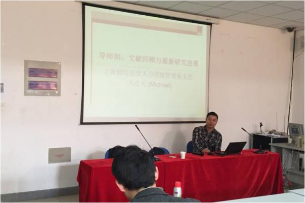 关浩光教授主要以导师制(mentoring)为背景,以及两篇实证研究成果为主,报告了导师制的含义、理论和实用意义,并着重讲述了导师制的质量对导师个人学习和工作家庭冲突的影响,以及负面情绪会影响导师的情绪耗竭和工作家庭冲突而带来的人际关系问题。在分享文献的同时,关浩光教授还对中英文文献进行了简单的比较分析,强调了英文文献的逻辑严谨性是我们应该重点学习的地方。