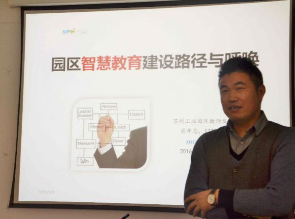 2016年1月8日下午2点,在教育学院中会议室,苏州园区教师发展中心肖年志主任应邀来我院做了一场主题为“园区智慧教育建设路径与呼唤”的学术报告,教育技术系系主任李利老师主持了本场报告。