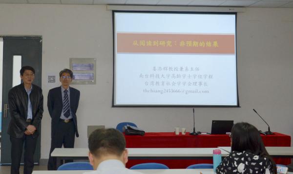 2016年4月18日下午14:00,在中会议室,台湾台南大学教育学院姜添辉教授应邀来我院做主题为“从阅读到研究:非预期的结果”的学术报告,许庆豫院长主持了本场报告。