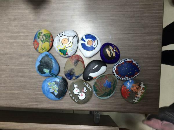 到场与会的有教育学院学生会於林主席、单淳渝副主席、宣传部部长陈玉洁、张鹏宇以及各位参赛选手。现场由宣传部干事任健同学担任主持人。活动于18:30分正式开始,首先由主持人为大家讲解比赛规则。每组参赛同学要在规定的时间内使用统一配发的作画工具在大约一拳大的石头上作画,描绘进入大学以来给人印象深刻的校园故事以及自己的心情。比赛开始,选手们在经过精心布置的会场中,伴着轻松愉悦的音乐尽情的发挥着自己的艺术才能和天马行空的想象力。有白莲出水相映相耀,有腆着白白肚皮的企鹅宝宝,更有亲昵的相望笑脸。这些作品都激起了大家丰富的想像!经过一个多小时的作画,选手们都出色地完成了自己的作品。在选手们逐一展示、介绍完自己的作品之后,评委们稍作商讨,选出了一、二、三等奖,并为他们颁发了奖品。活动最后以选手们与自己作品的合照圆满结束。