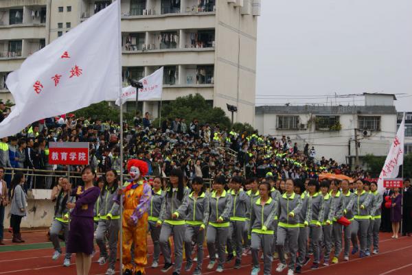2015年10月30日-31日,苏州大学第五十三届学生运动会在东校区运动场举行。开幕式上,各个学院的同学都穿上了体现自己学院风采的院服,迎着寒风,走着整齐的方阵。其中,教育学院派出了全女生方阵,巾帼不让须眉,同学们身穿灰色和荧光绿相间的运动服,精气神十足,步伐铿锵有力。