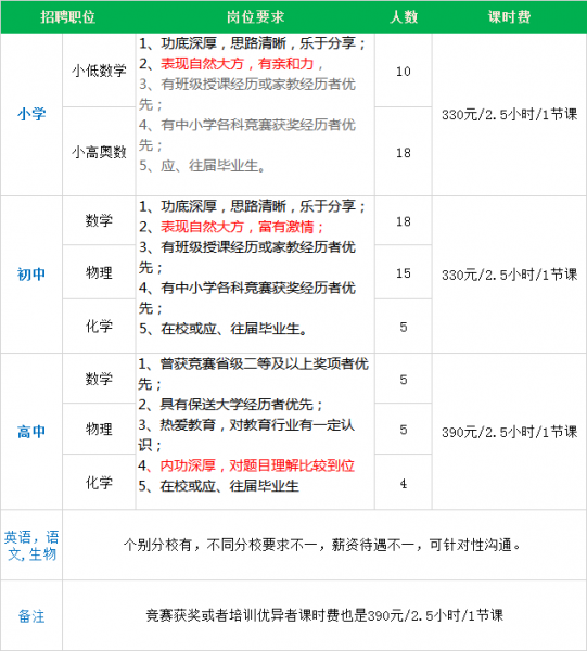 4、复试试讲:试讲应聘科目的一道题,每人3-5分钟,题目自行准备,题目尽量与初试不同,复试通过者另有面谈环节;