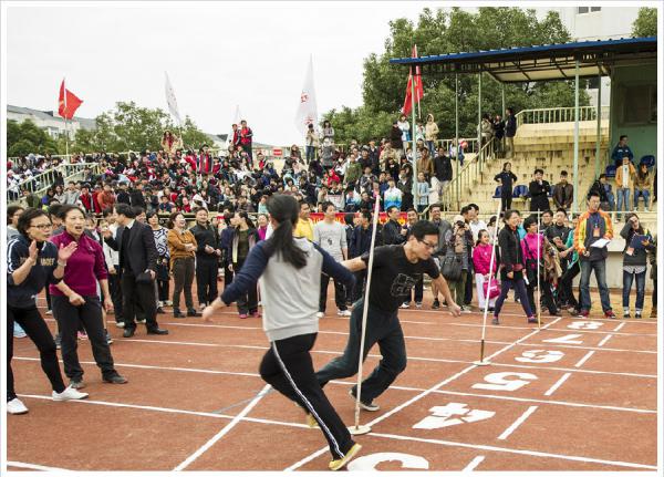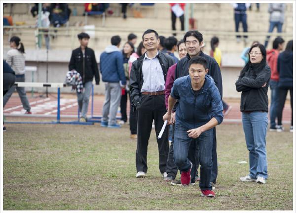 比赛开始了,虽然大家从未练习与配合过,但那份默契与合作却展现地淋漓尽致。看台上的学生见到平日里、三尺讲台前温文尔雅、正襟危坐的老师此刻也在运动跑道上为集体的荣誉而努力拼搏,都兴奋地大喊“加油”。
