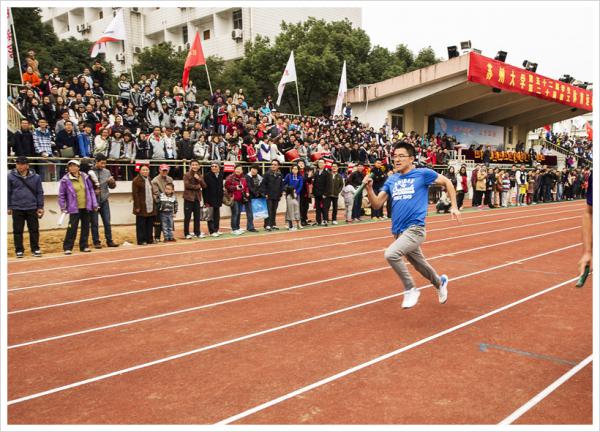 2014年11月9日,秋雨过后风瑟瑟,此时苏州大学两年一次的教职工运动会正按序进行。上午10:30分,最后一个教职工项目50米迎面接力开始了。全校共有19支教职工代表队参加比赛,分为四组进行。教育学院派出了12位教工,在组队其间由于个别队员受伤及临时被委以工作任务无法参加比赛,至使比赛开始的前一个小时还因人员不齐而在电话寻人中。终于,在集体精神的召唤下,在学院党委书记的带领下,我们的博导、教授为这份责任与信赖,克服了困难来到现场组成了参赛队伍。